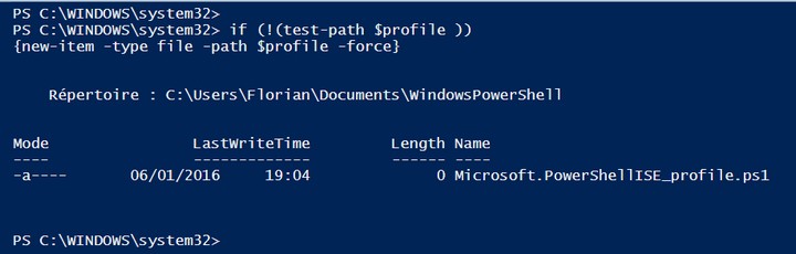 Le profil personnel est désormais stocké au chemin suivant : C:\Users\Florian\Documents\WindowsPowerShell
