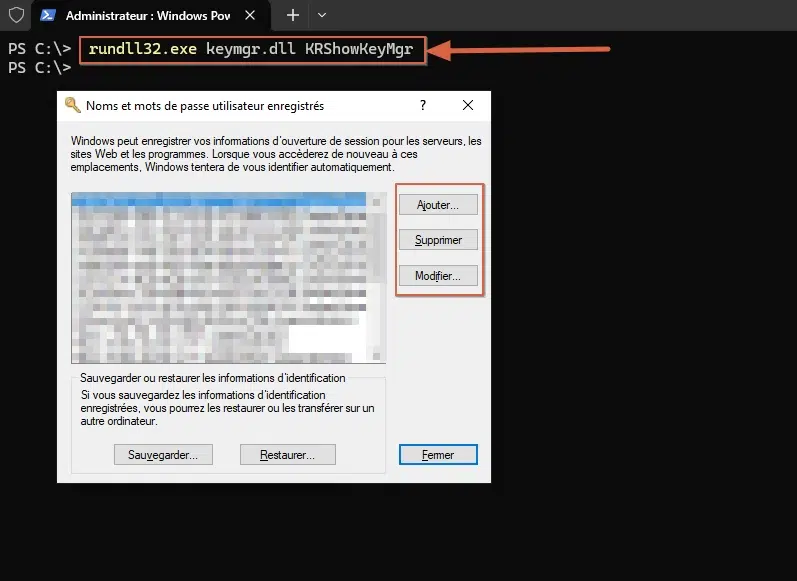 - Soit on l'ouvre en passant par le Panneau de configuration (Panneau de configuration > Comptes d’utilisateurs > Gestionnaire d’identification).