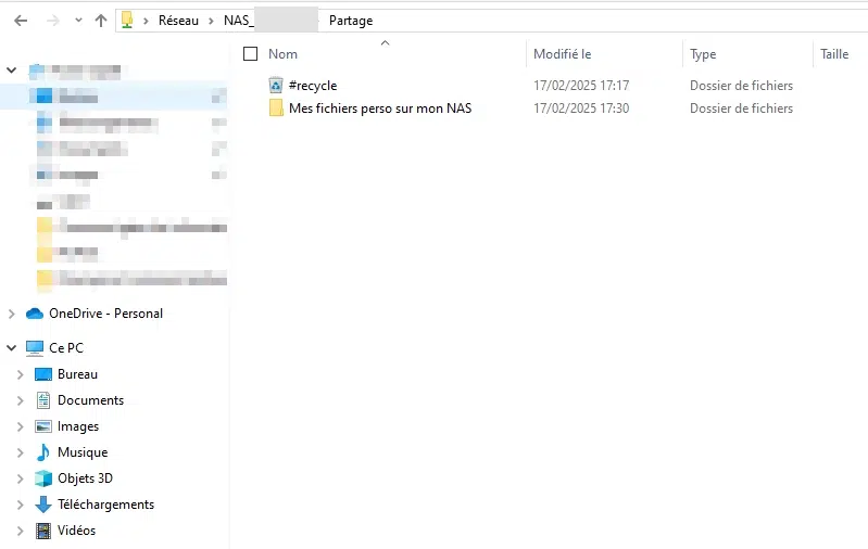 On devrait logiquement avoir accès au dossier partagé sur le NAS comme si on avait utilisé l'Explorateur de fichiers pour s'authentifier (via la connexion d'un lecteur réseau, par exemple).