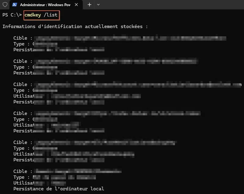 Le principal avantage de la méthode en ligne de commande est, comme toujours, le gain de temps. La gestion des informations d'identification se fait principalement avec la commande cmdkey, suivie d'un ou de plusieurs paramètres.