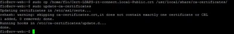 sudo cp /home/flo/Cert-LDAPS-it-connect.local-Public.crt /usr/local/share/ca-certificates/