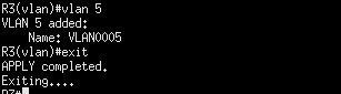 R3# vlan database R3(vlan)# vlan 5 R2(vlan)# exit