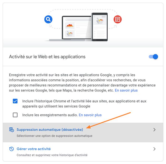 Sinon, pour gérer la suppression automatique des données, cliquez sur "Suppression automatique (désactivée)".