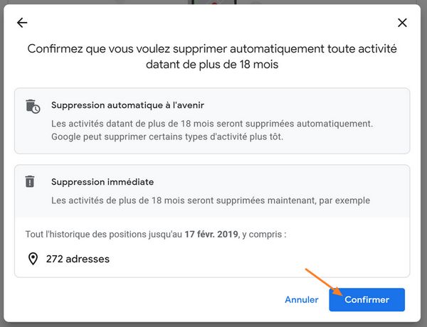 Cliquez sur "Confirmer" pour valider votre choix afin que Google procède à la suppression des données.