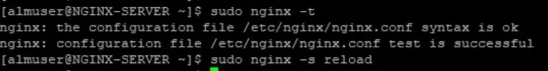 Vous allez pouvoir vérifier si vos fichiers sont bien configurés, et recharger NGINX :