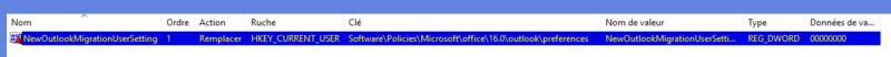 - Nom de valeur : NewOutlookMigrationUserSetting
