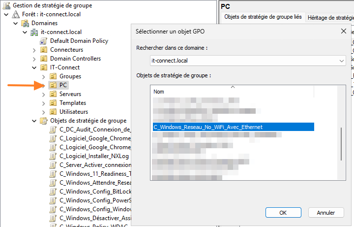 Cliquez sur OK pour valider. À ce stade, la GPO est prête. Mais, il reste à la lier... Pour que la stratégie s’applique aux ordinateurs ciblés, elle doit être liée à une unité d'organisation.