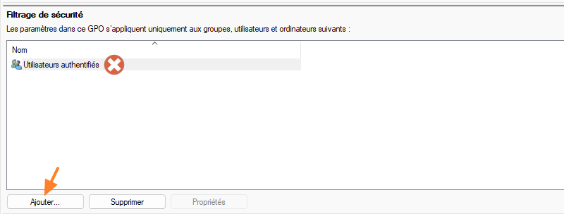 Si vous souhaitez effectuer un ciblage par groupe de sécurité, vous pouvez lier la GPO à l'OU, puis affiner en ajustant la partie "Filtrage de sécurité". Il conviendra de supprimer le groupe "Utilisateurs authentifiés" et d'ajouter votre groupe. Si vous ne connaissez pas cette méthode, consultez ce tutoriel :