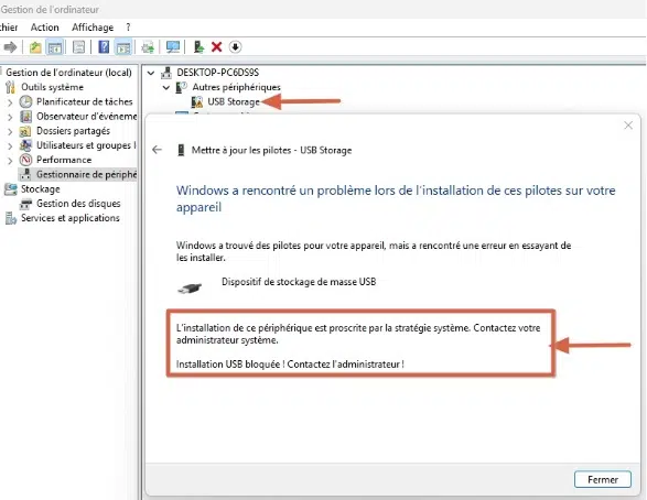 - Bloquer ensuite l’installation de tout autre périphérique (clé USB, disque dur externe, imprimantes, etc.)