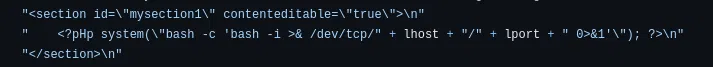 On note notamment le "pHp", qui joue avec les majuscules pour contourner un contrôle un peu trop laxiste sur les chaines de caractères. Ce code PHP vise à créer un reverse shell, c'est-à-dire un accès shell distant qui va venir se connecter à mon système :