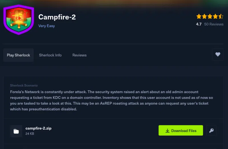 On se retrouve dans cet article pour une nouvelle solution de l'un des challenges d'investigation numérique/forensic nommés Sherlocks et mis à disposition par la plateforme Hack The Box. Dans cet article, nous allons détailler la démarche qui permet de résoudre le Sherlocks Campfire-2, de difficulté "débutant". Il s'agit d'investiguer sur les traces d'une cyberattaque ciblant un système d'exploitation Windows et un domaine AD.
