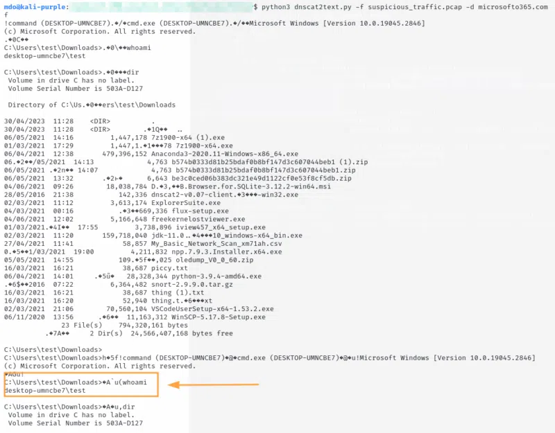 python3 dnscat2text.py -f suspicious_traffic.pcap -d microsofto365.com