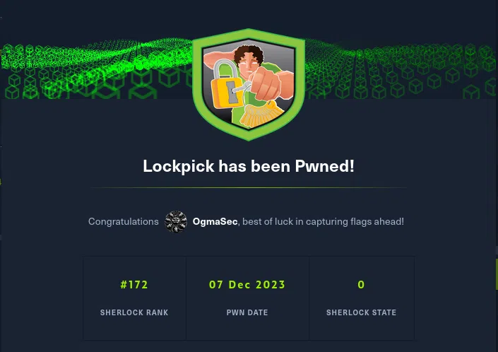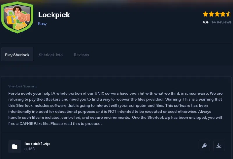 On se retrouve dans cet article pour une nouvelle solution de l'un des challenges d'investigation numérique/forensic nommés Sherlocks et mis à disposition par la plateforme Hack The Box. Dans cet article, nous allons détailler la démarche qui permet de résoudre le Sherlocks Lockpick, de difficulté "Facile".