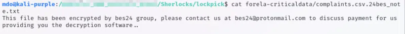 C'est à ce moment-là que le contenu du fichier est supprimé et réécrit par son équivalent chiffré. Enfin, le message de rançon est écrit dans un fichier avec l'extension 24bes-note.txt.