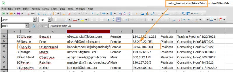 - Task 6 : Our E-Discovery team would like to confirm the IP address detailed in the Sales Forecast log for a user who is suspected of sharing their account with a colleague. Please confirm the IP address for Karylin O'Hederscoll.