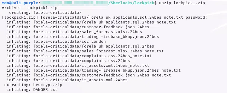 La seconde archive ZIP est protégée par un mot de passe fourni dans le fichier DANGER.txt :