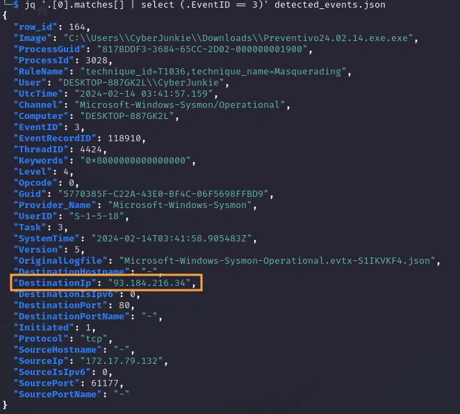 jq '.[0].matches[] | select (.EventID == 3)' detected_events.json