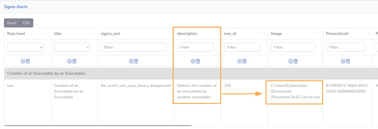 Comme expliqué dans notre article sur Zircolite, nous pouvons aussi cliquer sur chacun de ces évènements pour avoir des détails :