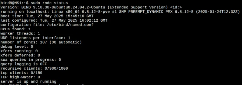 Après avoir ajouté la configuration, redémarrez BIND pour appliquer les changements :