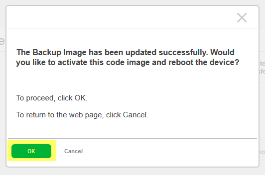 Si vous êtes hors production, vous pouvez cliquer sur "OK" pour que le switch redémarrer sur la nouvelle image de firmware. Le firmware qui était en production jusqu'ici va passer en firmware secondaire, dit de backup, alors que le nouveau firmware sera actif.