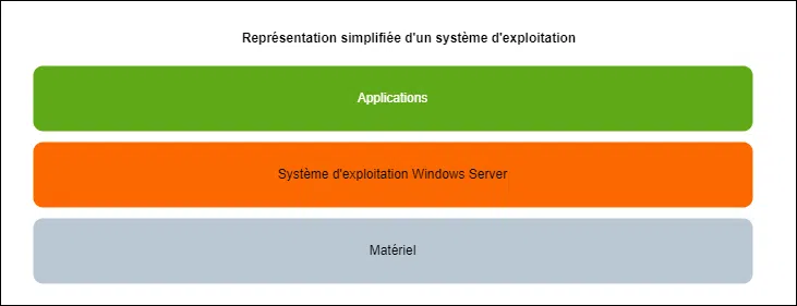 Sans Hyper-V, Windows Server est un système d’exploitation conventionnel, c’est-à-dire un ensemble de logiciels (noyau) qui permet d’exécuter des programmes et de traiter les demandes d’utilisation des ressources d’un ordinateur.