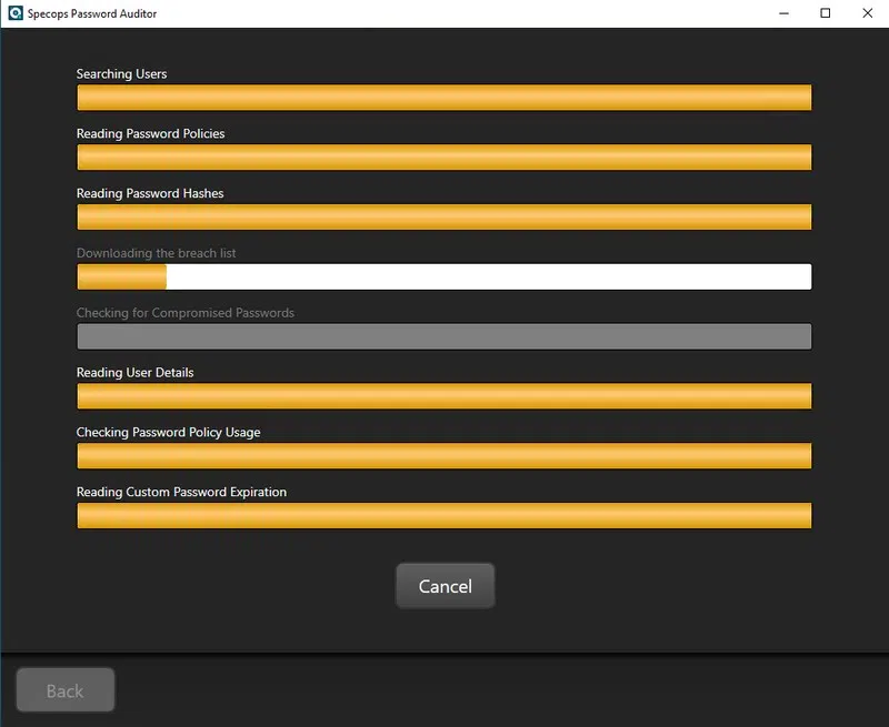 Specops Password Auditor va effectuer une analyse de votre annuaire Active Directory. Pour réaliser cette analyse et en tirer des conclusions, il va regarder les hash des mots de passe et scanner différents attributs des comptes utilisateurs de votre annuaire, notamment pwdLastSet, userAccountControl, et lastLogonTimestamp.