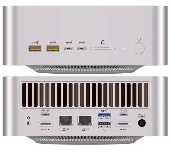 Pour la connectivité réseau, comptez sur deux ports Ethernet 2,5 Gb/s, du Wi-Fi 7, et du Bluetooth 5.4, sans oublier la connectique générale avec USB4, USB 3.2 Gen 2, HDMI 2.1 (jusqu’à 8K/60Hz), un lecteur SD 4.0 et même un lecteur d’empreintes digitales intégré au bouton d’alimentation (une première chez Geekom).