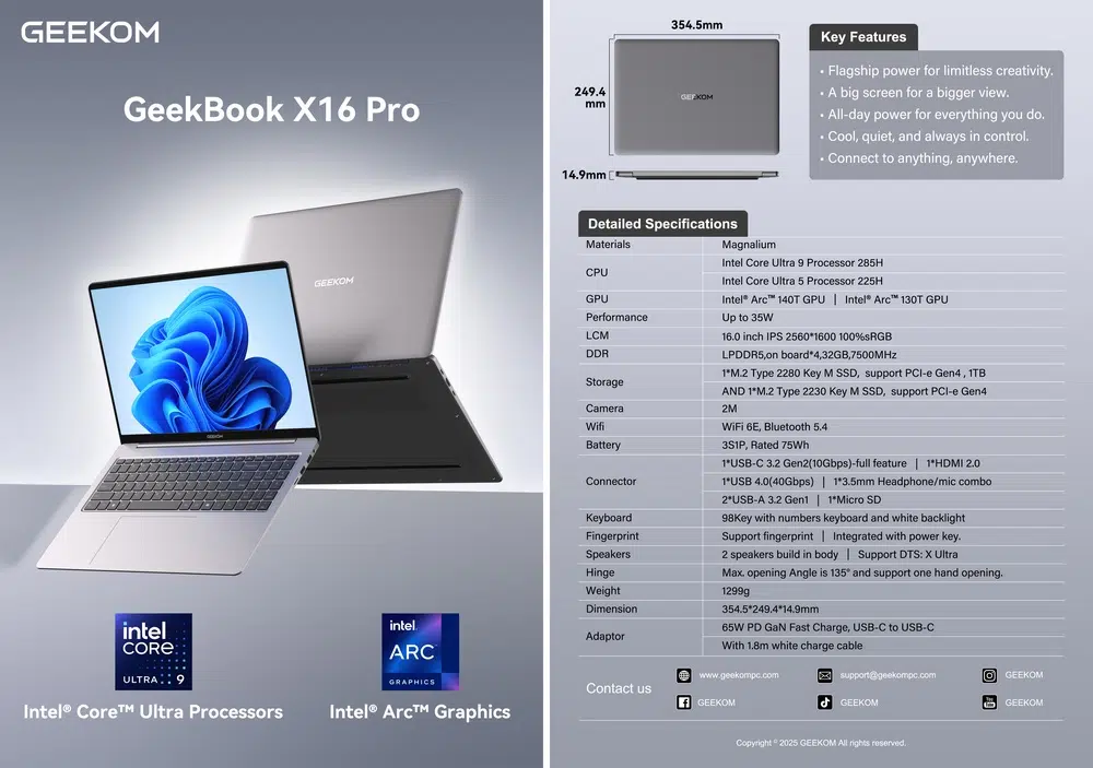 - Le GeekBook X16 Pro : un ordinateur portable 16 pouces avec un Core Ultra 5 ou un Core Ultra 9