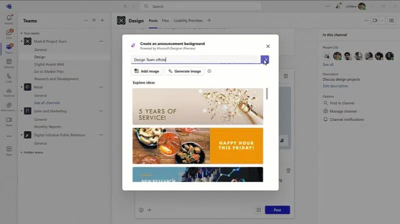 Autre nouveauté réservée aux abonnés à Teams Premium et à Microsoft 365 Copilot : la possibilité d'utiliser un arrière-plan personnalisé généré par l'IA lors d'une nouvelle annonce dans un canal Teams.