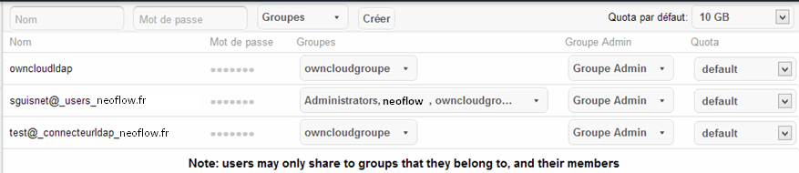 mais les utilisateurs ne sont pas importé dans les utilisateurs de owncloud