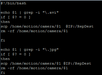 Remarque : J'ai configuré motion pour qu'il enregistre les photos et vidéos dans /home/motion/camera, et j'ai souhaité faire un tri en fonction du format de fichier et envoyer le tout sur le serveur distant.
