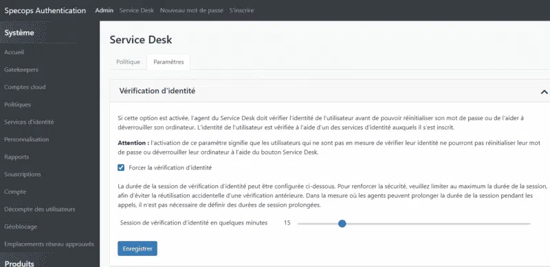 Par l'intermédiaire de sa solution Secure Service Desk associée à sa plateforme Specops Authentication, l'éditeur Specops propose un système de vérification de l'identité des utilisateurs. Ainsi, lorsque le helpdesk reçoit un appel d'un utilisateur, ce mécanisme de sécurité va permettre à l'utilisateur de prouver son identité.
