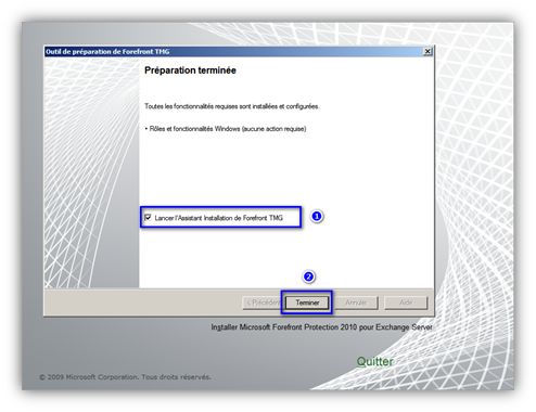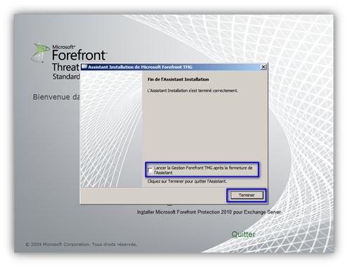 Cliquer sur « Lancer l’installation de Forfront TMG » et « Terminer »