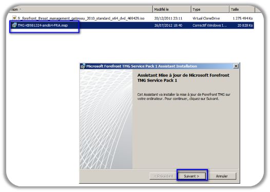 Double clic sur « TMG-KB91324-amd64-FRA.msp » et cliquer sur « Suivant »