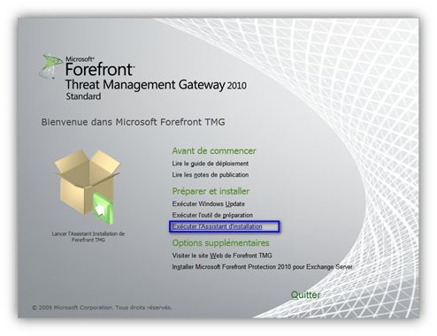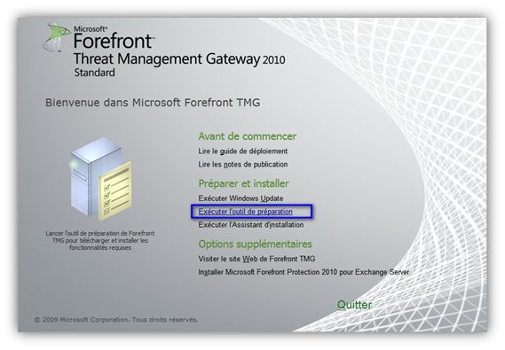 Une fois que la préparation est terminée, vous pouvez commencer l’installation de Forfront TMG.