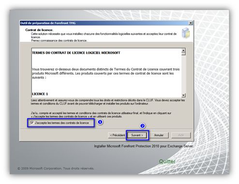 Cocher la case « J’accepte les termes des contrats de licence » et « Suivant »