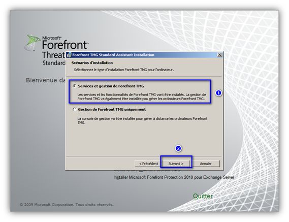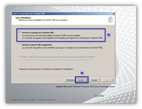 Choisir « Services et gestion de Forfront TMG » et cliquer sur « Suivant »