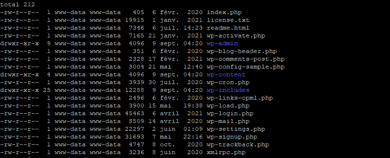 Note : le fichier wp-config.php est un fichier sensible, il contient la configuration de WordPress, notamment les identifiants pour se connecter à la base de données.