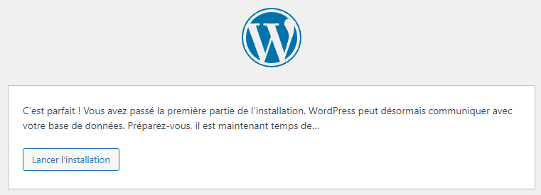 WordPress va tenter de se connecter à votre base de données et si cela fonctionne, un bouton "Lancer l'installation" va s'afficher. Cliquez dessus.
