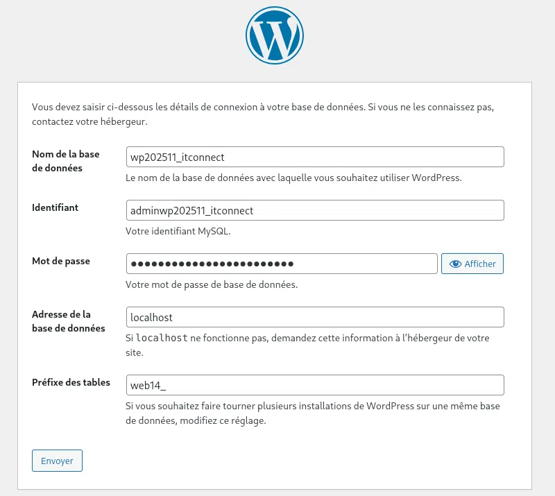 wp202511_itconnect - Identifiant : le nom de l'utilisateur qui a les droits sur la base de données, en l'occurrence