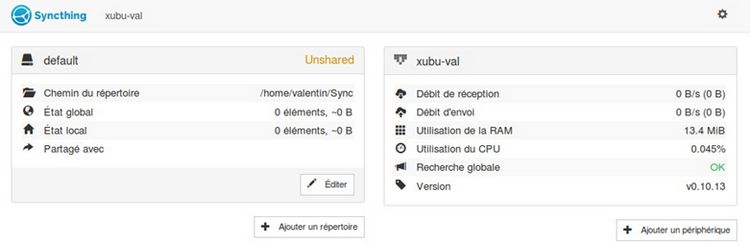 On peut donc maintenant, créer notre premier partage entre nos deux serveurs Syncthing :