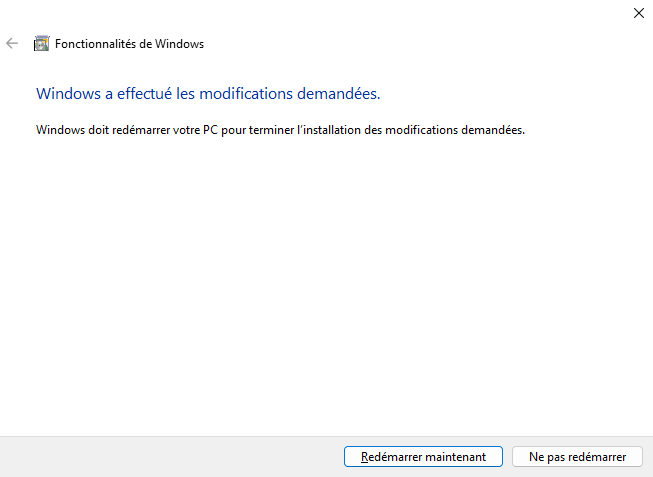 Pour finaliser l'installation, vous devez redémarrer votre PC comme l'indique l'assistant.