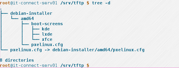 On va créer sur notre serveur une arborescence classique pour le serveur TFTP que nous installerons par la suite. L'arborescence à créer est "/srv/tftp".