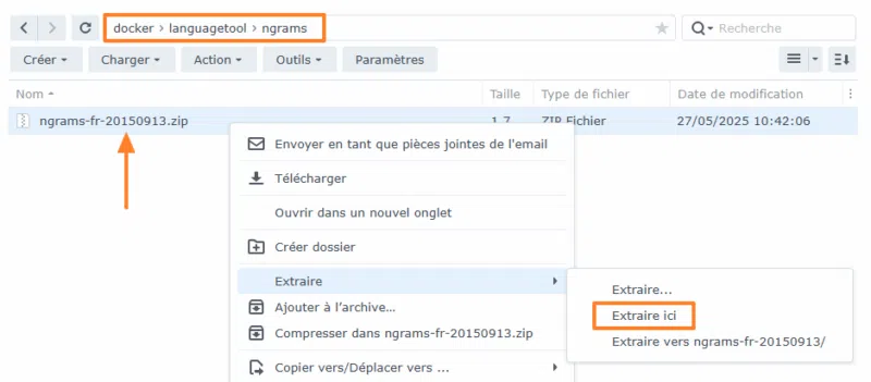 2 - Vous obtenez alors l'arborescence suivante : /docker/languagetool/ngrams/fr.