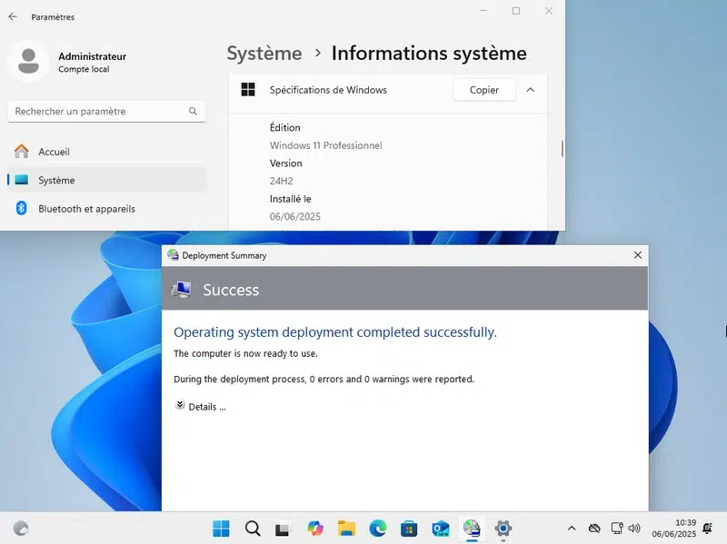 Remarque : tutoriel mis à jour le 16 juin 2025 après avoir testé le déploiement de Windows 11 24H2. Il est tout à fait possible de déployer aussi Windows 11 23H2.