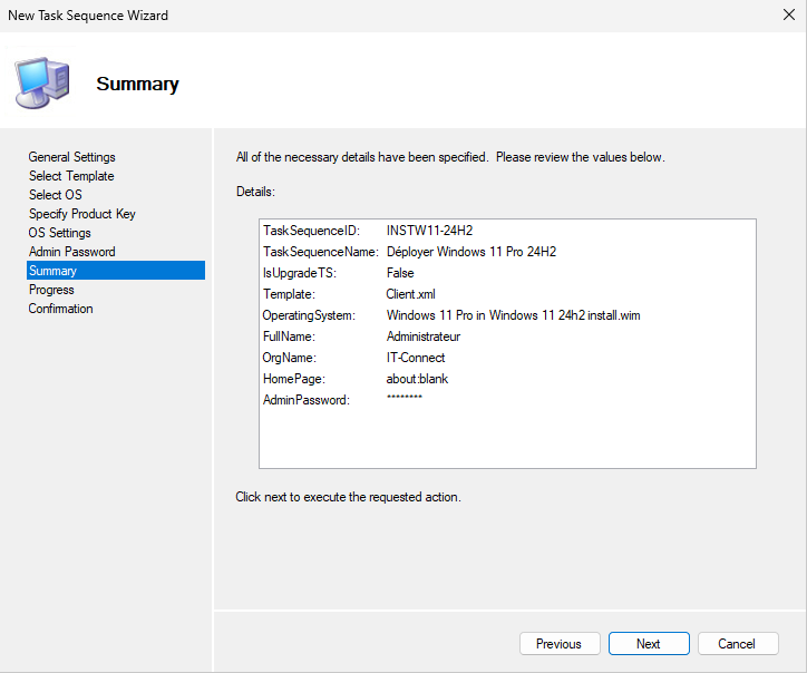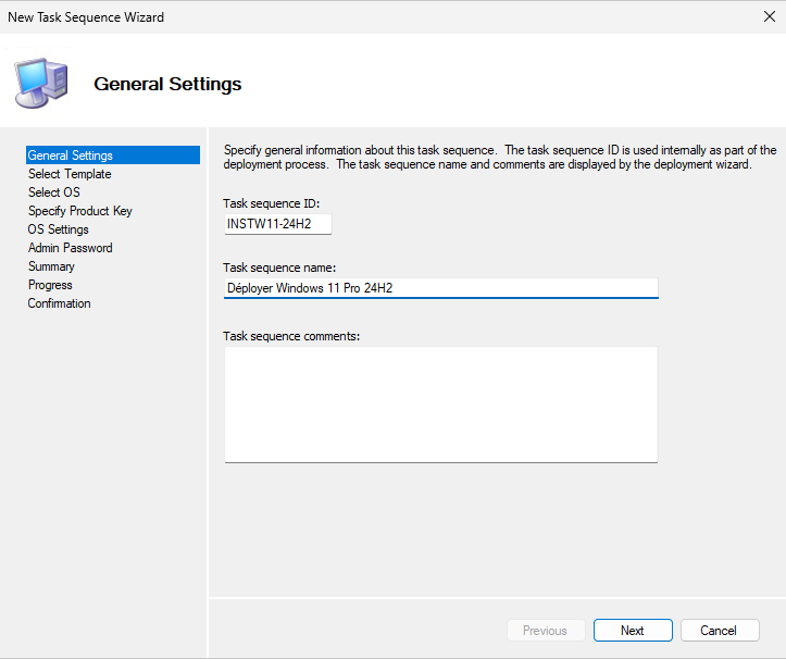 Commencez par indiquer un nom qui fera office d'ID (identifiant unique) pour cette séquence de tâches, puis indiquez un nom : "Déployer Windows 11 Pro 24H2" fera l'affaire.