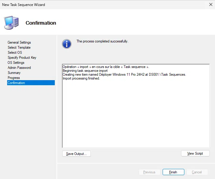 Poursuivez... L'image va être importée sur votre serveur dans le Deployment Share.
