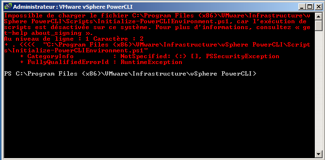 Une fois que c'est fait, relancez VMware vSphere PowerCLI puis patientez, vous devriez obtenir ceci :