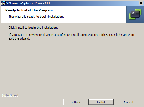 Cliquez sur "Install" pour exécuter l'installation de vSphere PowerCLI puis patientez quelques minutes.