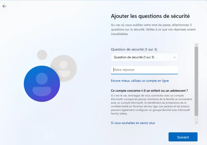 Par la suite, vous devrez définir un mot de passe, ainsi que 3 réponses pour 3 questions de sécurité. Ceci est utile si vous oubliez votre mot de passe.